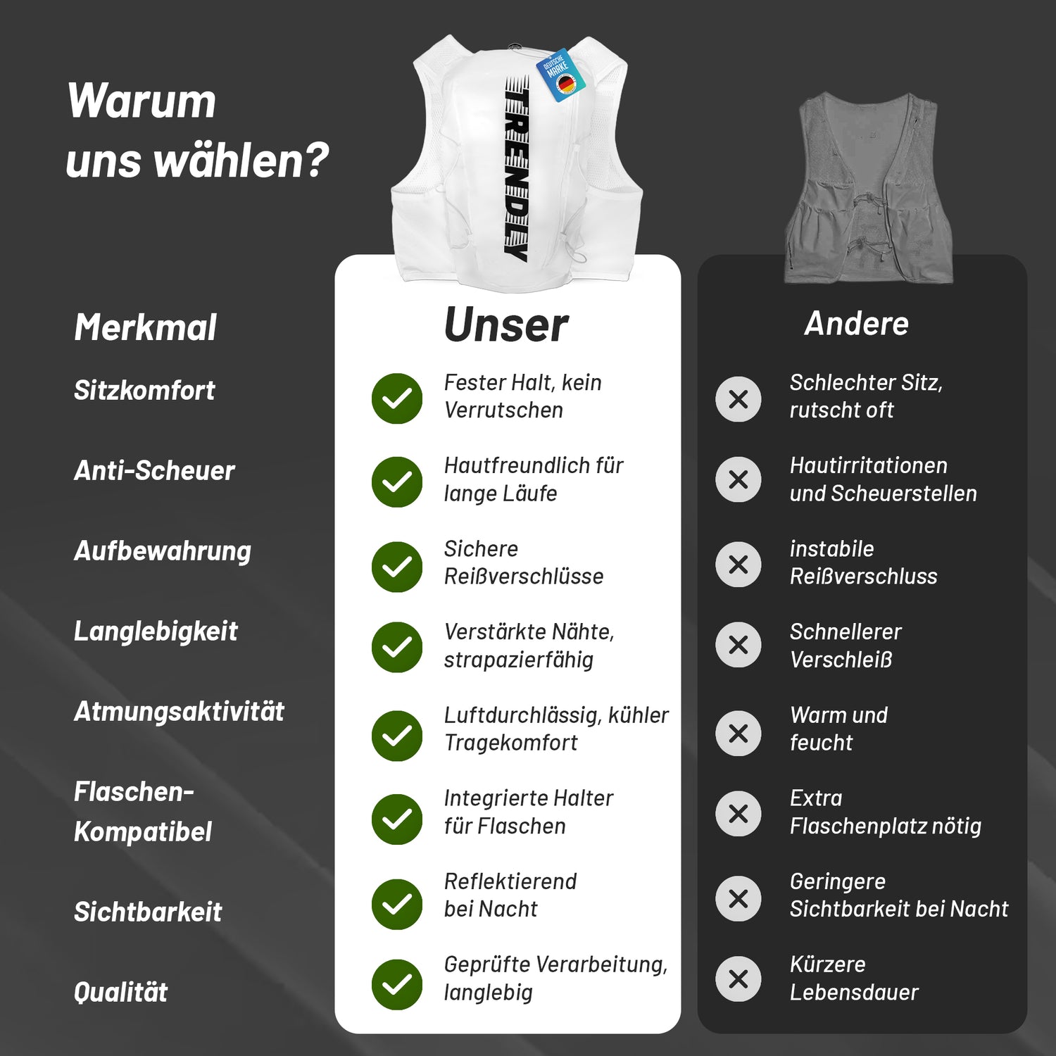 Ideal als Laufweste, Running Vest, Jogging Weste, Trinkrucksack oder Trailrunning Trendly Weste für Einsteiger und Profis.